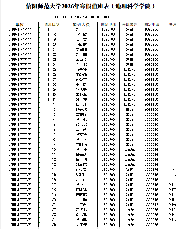 太阳集团tyc234cc2026年寒假值班表