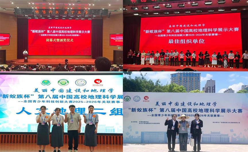 2025年7月25—27日,“新蚁族杯”第八届中国高校地理科学展示大赛总决赛于河南大学圆满落幕。本届大赛由中国地理学会、中山大学地理科学与规划学院主办,广东新蚁族文化发展有限公司冠名协办。经过激烈角逐,我院四支入围决赛队伍凭借扎实的专业功底与出色的现场表现,最终全部斩获全国总决赛二等奖,太阳集团tyc234cc凭借卓越成效的赛事组织工作,荣膺大赛“最佳组织单位”称号。
