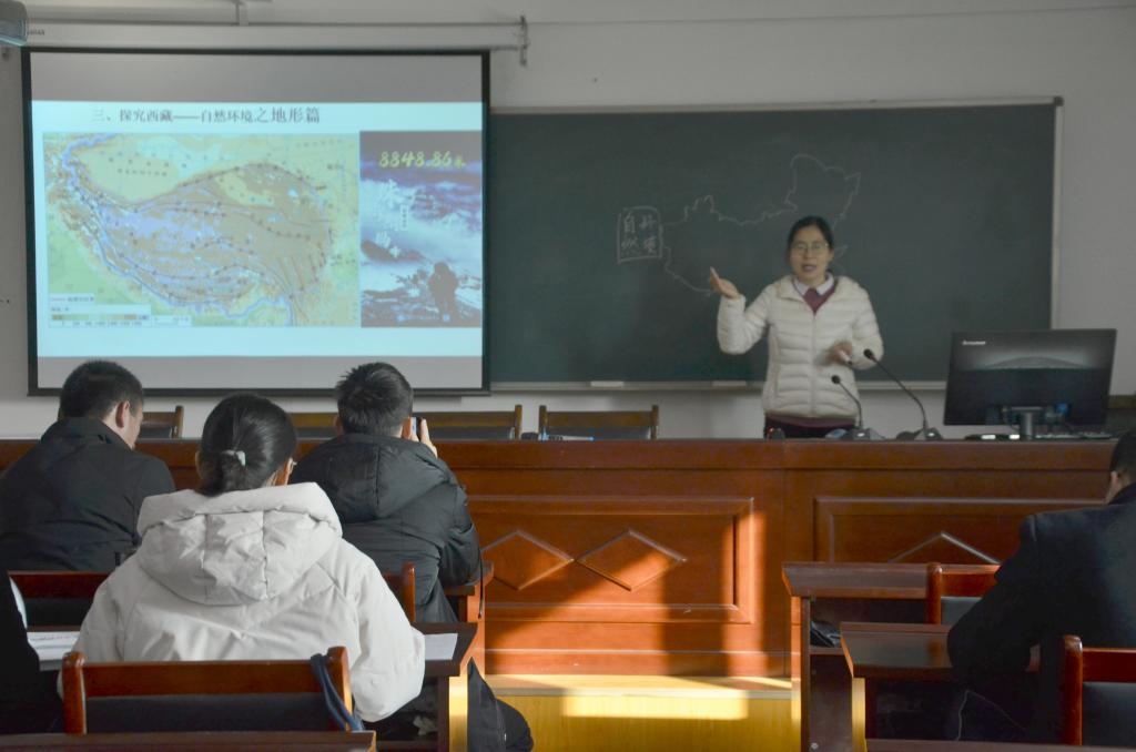 由赵亮亮简单介绍了培训开展流程及教师授课顺序之后,培训正式开始。教师们依次进行授课,采用多种多样的授课方式,结合丰富多彩的PPT内容,为我们讲述了天气、等高线、人文地理等相关地理学科知识,并采取互动学习模式进行授课,用与地理文化相关的歌曲、视频等活跃课堂氛围,赢得了参会老师的热烈掌声。授课教师结合自身教学经历,以积极热情、严谨负责的态度,带给参会人员一场精彩绝伦的地理知识盛宴。接着,研究生崔艳晓、刘柯分别进行实习授课,她们精神抖擞,饱含热情,对知识点的讲解清楚透彻,赢得了参会教师的阵阵掌声。最后,尹清洗、向坤勇依次对教师授课表现进行打分与评价,结合教师授课时的优缺点,提出合理的建议,教师们受益匪浅,至此,此次培训顺利结束。