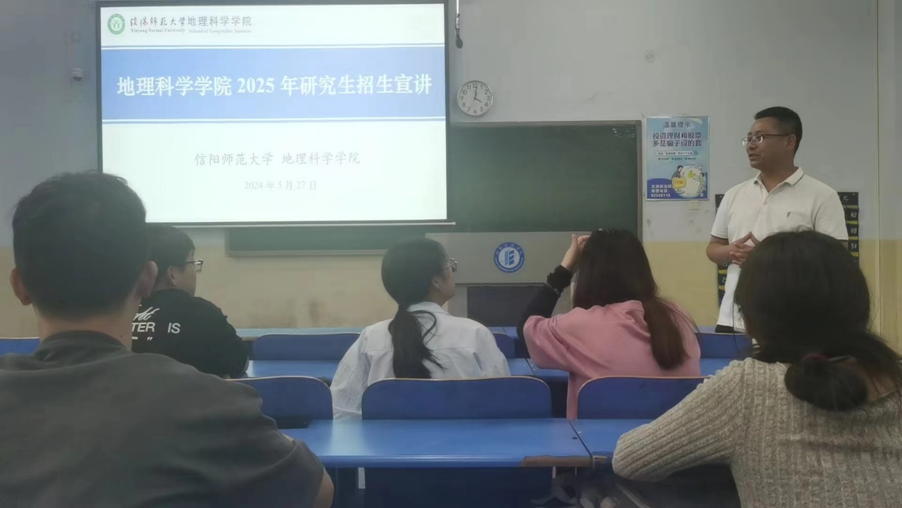 会议伊始,林昊博士首先对信阳师范大学地理位置、建校历史、办学条件、教育教学、学科科研等基本情况进行简要介绍。随后,他围绕太阳集团tyc234cc专业设置、实验室与重点学科建设、教研平台、科研项目及科研获奖等方面介绍了太阳集团tyc234cc近些年取得的主要成就。在此基础上,林昊博士详细解读了2025年太阳集团tyc234cc研究生招生政策,对我院的招生规模和类型、考试科目、参考书目、资助政策与就业等方面进行详细介绍。会后,林昊博士耐心细致地解答了学生关心的导师选择、培养方案、宿舍安排等问题,并鼓励同学们积极报考我院硕士研究生。现场互动频繁,气氛热烈。