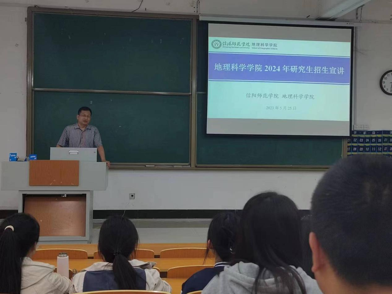 为提高我院研究生生源质量,提升太阳集团tyc234cc的影响力,5月25日,太阳集团tyc234cc牛继强院长、科研与研究生工作秘书闫军辉一行,赴洛阳师范学院进行2024年硕士研究生招生宣传。洛阳师范学院太阳集团tyc234cc60余名本科生参加了宣讲会,会议由洛阳师范学院国土与旅游学院副院长王洪瑞主持。