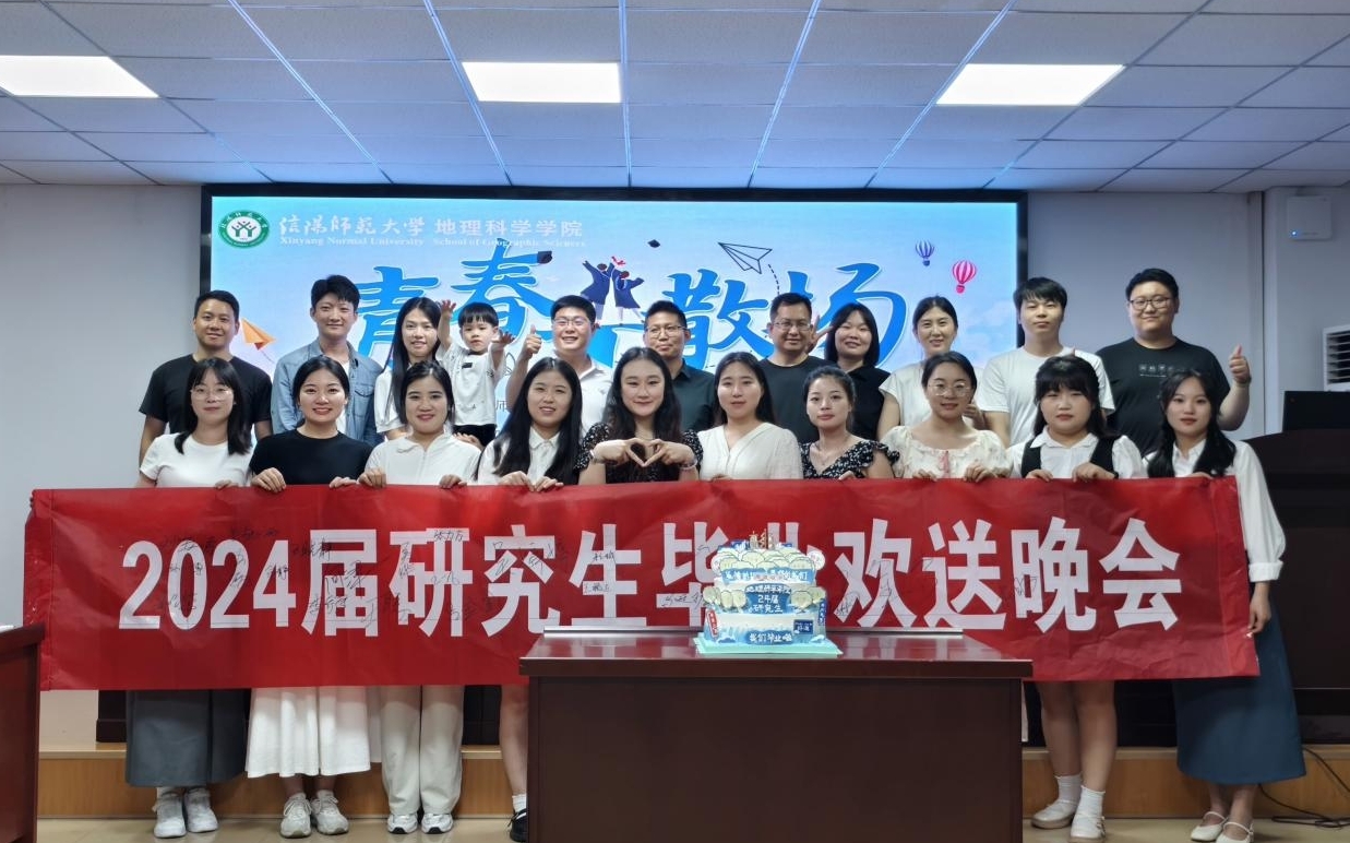 5月30日晚,我院于理科楼南楼410会议室举办2024届研究生毕业欢送晚会。太阳集团tyc234cc副院长刘明华、副院长颜俊、研究生工作秘书闫军辉、自然地理系主任李秀美、张兵兵、研究生班主任何伟纯等教师代表参加,2024届毕业生和2023级、2022级研究生共60余人参加了晚会,晚会由董毅航、卢晓主持。