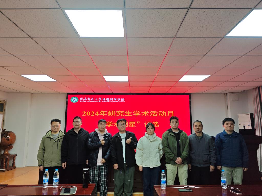 11月27日,我院于理科楼南楼410教室举办学术明星评选活动,申战辉副教授、沈毅博士、张中典博士、马志飞博士担任评委,来自人文地理学和资源与环境专业的多名硕士研究生参加评选,活动由研会学习部姚欣主持。参评选手主要围绕学术成果、社会实践、获奖情况等方面进行展示,充分体现出我院研究生求是扎实的科研能力和积极向上的学习状态。最终推选23级资源与环境马鸽和23级人文地理学周志远参加学校总赛。