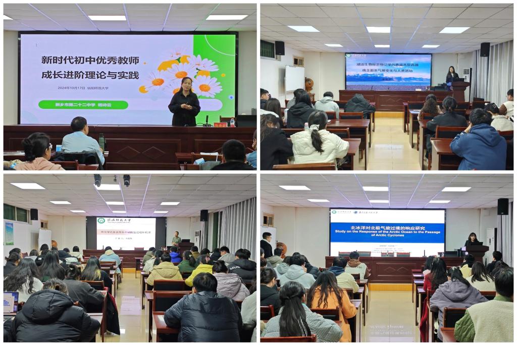 为拓宽研究生学术视野,提高研究生科研素养,我院依托“南湖讲坛”“贤岭学术沙龙”等交流平台,于11月24日-12月27日,分别邀请河南理工大学樊良新教授和乔旭宁教授、北京师范大学陈彬教授、华东师范大学丁金宏教授和新乡市第二十二中学杨诗云副教授等校外知名专家学者以及李秀美、刘昱君、申战辉、张鹏飞、李宗盟、何伟纯等校内优秀教师在理科楼南楼410给全体研究生作学术报告。这些系列讲座,涵盖自然地理学、人文地理学、学科教学、测绘工程、环境科学与工程等学科,全面激发了我院研究生参与学术研究的热情,开阔同学们的学术视野,对今后学术论文撰写、专业技能提升等有极大推动作用。