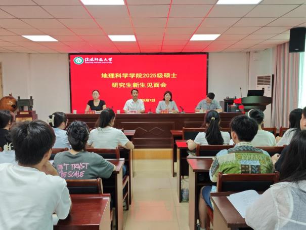 会议伊始,颜俊代表学院向2025级研究生新生的到来表示热烈欢迎,并强调了学院对研究生教育的重视。从学习、学术、学问的区别指出从基础学习到掌握解决问题方法的学术,再到融合古今、影响深远的学问,是个人学术成长的三个阶段。接着,从研究生选择导师与学术发表要求、地理学中的问题发现与解释方法、研究生思维转换与学术研究方法、学术产出与职业规划及学院科研平台与研究生培养等多个方面向大家进行详细介绍,并对2025级研究生提出了殷切期望。颜院长的发言让新生对即将开始的研究生生涯有了更加清晰的认识,也更加明确了学习目标。