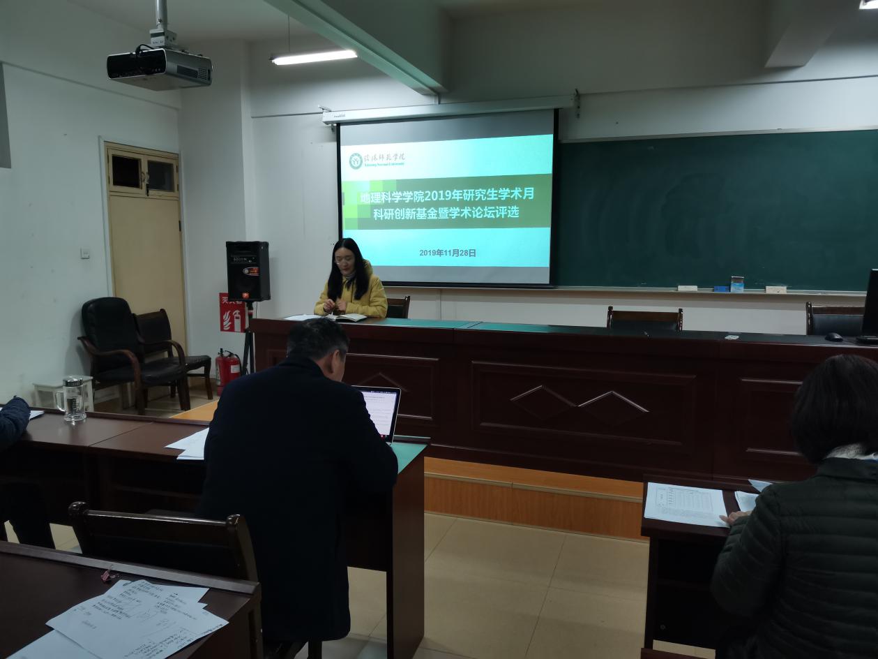 2019年11月25日,太阳集团tyc234cc科研创新基金暨学术论坛评选会在理科楼南楼410会议室举行。本次活动有8名硕士研究生报名参加,牛继强教授、王义民教授、李清飞副教授、颜俊博士和闫军辉博士组成评审专家小组,会议由研究生班主任郑茜博士主持。