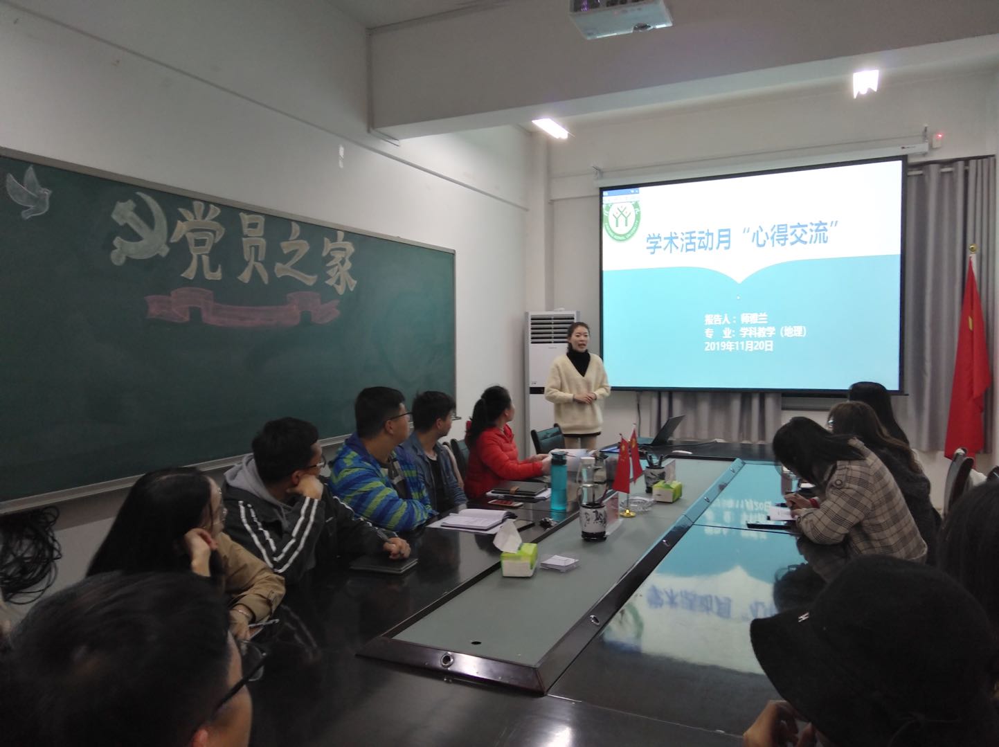 2019年11月20日,太阳集团tyc234cc于理科楼南楼403室召开2019年硕士研究生国家奖学金经验交流会议。交流会由国家奖学金获得者、2018级学科教学·地理专业师雅兰主讲,太阳集团tyc234cc全体在校研究生参加了此次交流会,会议由分会主席崔越主持。