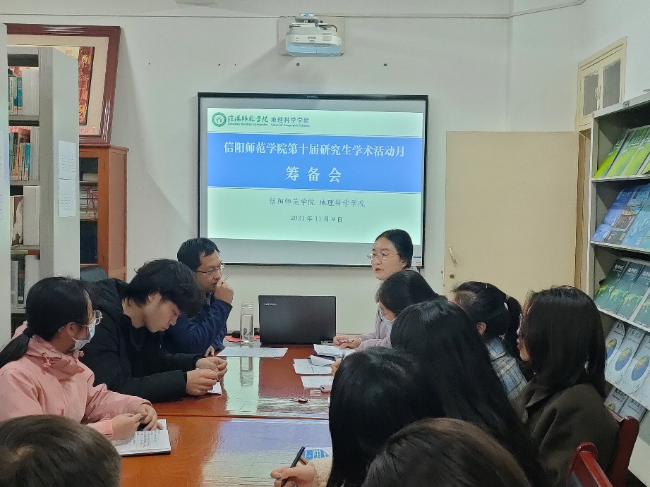 为全力做好“信阳师范学院第十届研究生学术活动月”宣传和组织工作,扎实推进各项活动有序开展,11月9日,我院于理科楼北楼1011室举行研究生学术活动月筹备会,研究生工作秘书闫军辉副教授、研究生班主任郑茜博士及研究生会全体成员参加了会议,会议由郑茜博士主持。