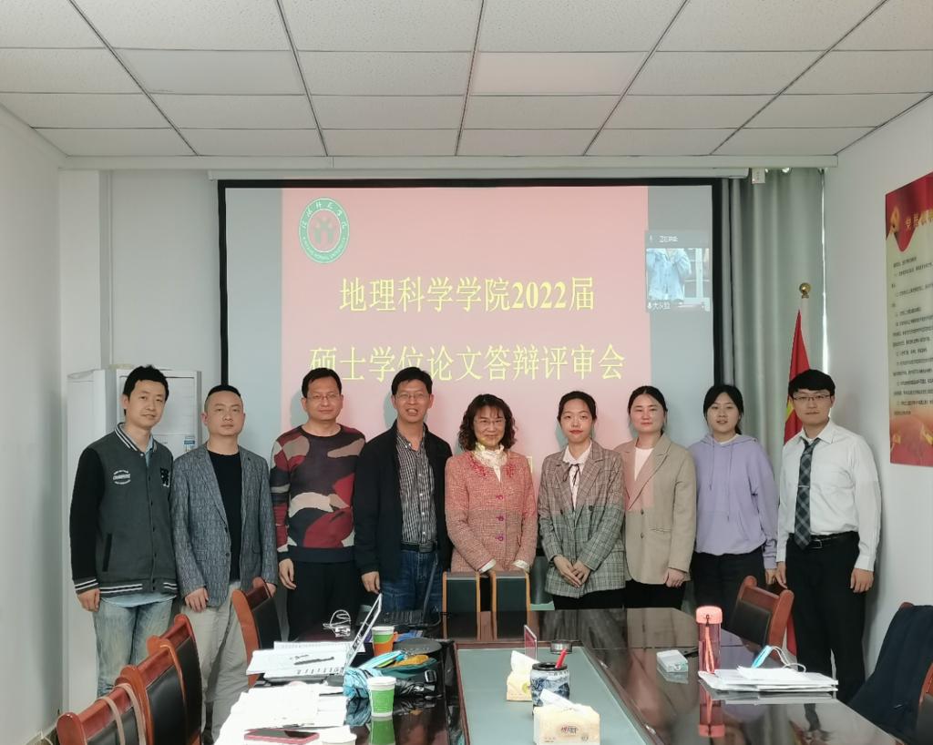 5月12日,我院2022届硕士研究生学位论文答辩以线上和线下相结合的方式,在理科楼南楼403会议室、理科楼北楼1102会议室、软科基地和腾讯会议平台举行。河南大学地理与环境学院朱连奇教授、河南财经政法大学资源与环境学院樊新生教授、安徽师范大学地理与旅游学院李俊峰教授、信阳市基础教育教学研究室孟勇教授莅临指导并担任答辩委员会主席,地理学和学科教学(地理)专业研究生共60余人参加了答辩评审会。