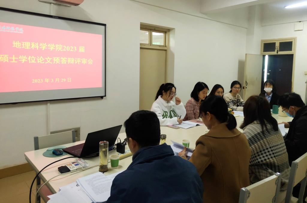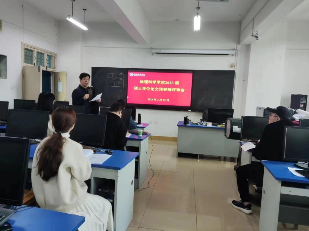 3月29日,我院于理科楼南楼601室、北楼1107会议室举行了2023届硕士研究生学位论文预答辩评审会。评审会分两组进行,张兴国副教授、潘晓芳副教授分别担任评审会组长,李秀美副教授、张兵兵副教授、范辉副教授、张向敏博士、李宗盟博士、颜伟博士担任评审会专家。地理学与学科教学(地理)专业研究生10余人参加了此次预答辩评审会。