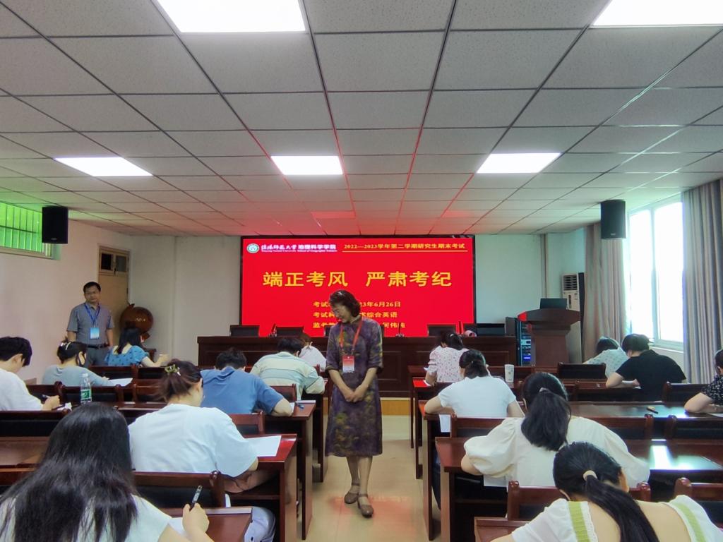 6月26-28日,2022-2023学年第二学期研究生期末考试在理科楼顺利举行。为加强期末考试管理,严肃考风考纪,太阳集团tyc234cc副院长刘明华教授深入期末考试现场巡视检查,指导研究生开展期末考试工作。