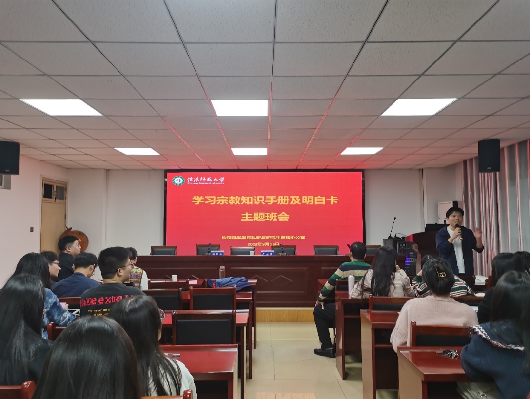 宗教知识学习和入党宣讲是我院研究生新生入学教育的重要组成部分。通过开展新生宗教知识手册学习和入党宣讲主题班会,使研究生对国家宗教政策和入党流程有更深层次的认识,增强新生明辨是非的能力,为维护校园的和谐稳定、促进学生个人发展奠定了良好的基础。