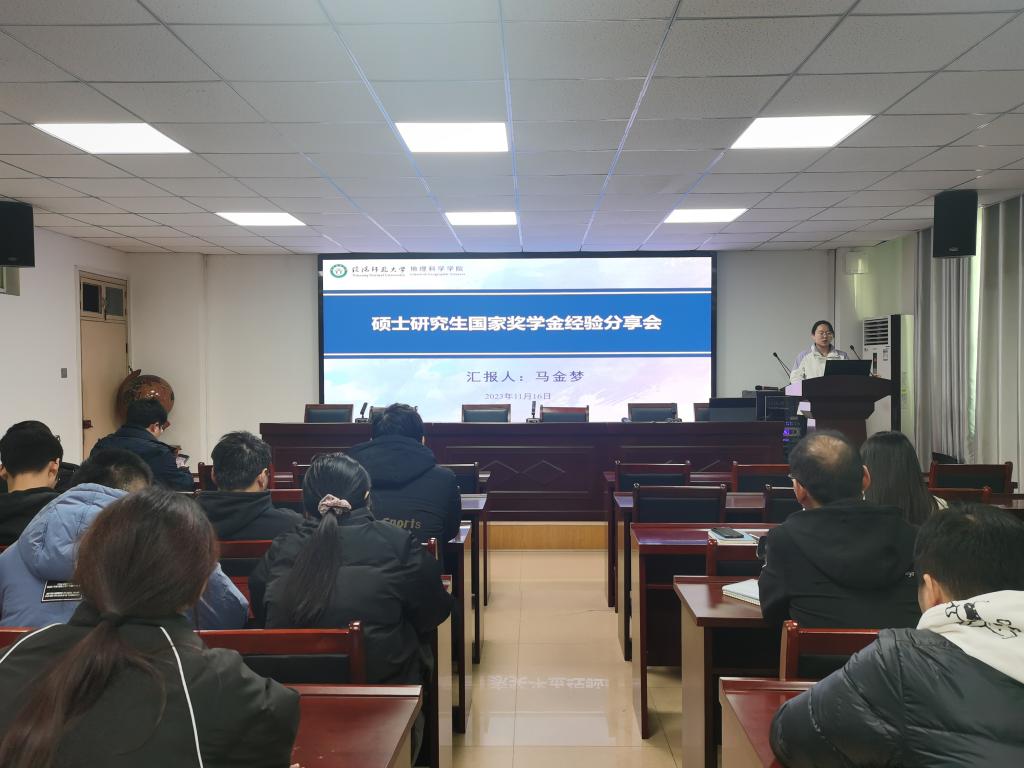 为充分发挥国家奖学金获得者的榜样引领作用,激励学生勤奋学习、奋勇创新、开拓进取,促进学生全面发展,2023年11月16日,我院在理科楼南楼410会议室举办硕士研究生国家奖学金经验分享会,邀请2023年国家奖学金获得者马金梦分享经验,在校研究生90余人参加了分享会,分享会由研究生班主任何伟纯博士主持。