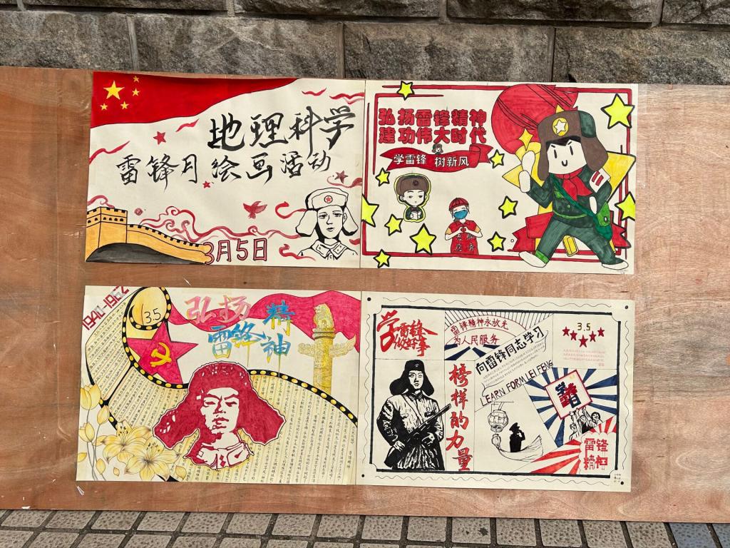 同学们对于本次绘画活动表现出极大的热情,纷纷提交自己的作品并表述了自己的绘画理念。色彩斑斓的画布上,同学们挥洒着对雷锋精神的理解和崇敬,用画笔描绘出一个个生动的场景,或是雷锋帮助他人的温馨瞬间,或是当代青年在学习、工作、志愿服务中的雷锋式身影。每一幅作品都是对雷锋精神的一次深刻诠释,也是对自我社会责任感的一次觉醒。绘画不仅仅是一种技能的展示,更是一种情感和思想的传达,使同学们不仅能够学习到雷锋无私奉献的精神,还能够在创作中培养自己的审美和创新能力。