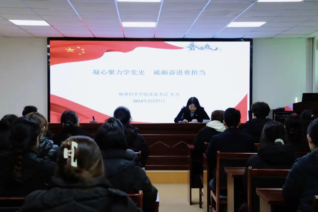 为巩固拓展学习贯彻习近平新时代中国特色社会主义思想主题教育成果,全面落实立德树人根本任务,2月27日下午,我院党委书记宋力于理科楼南410会议室,为2023年下半年新发展党员开展“凝心聚力学党史 砥砺奋进勇担当”专题党课,辅导员曹鹏鹏、姚玉坤参会。