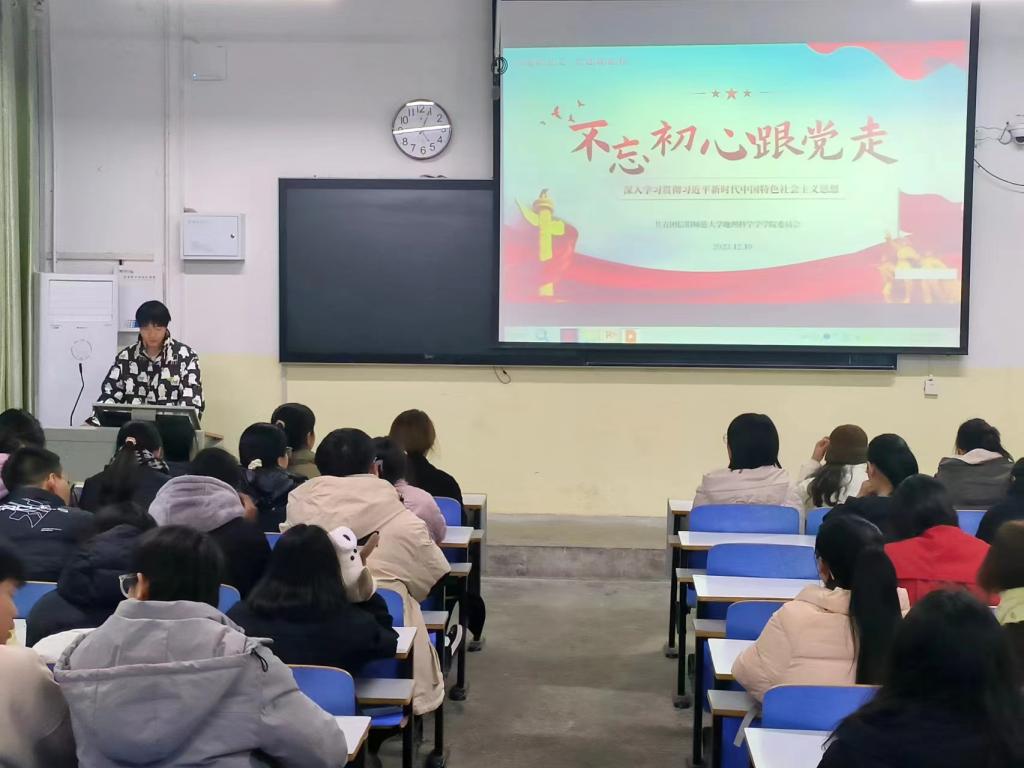 12月10日,我院在教三01举行“永远跟党走,奋进新征程”主题团课。学生会团委副书记刘艺,环境科学与工程班和测绘工程班全体成员参加,团课由刘艺主持。