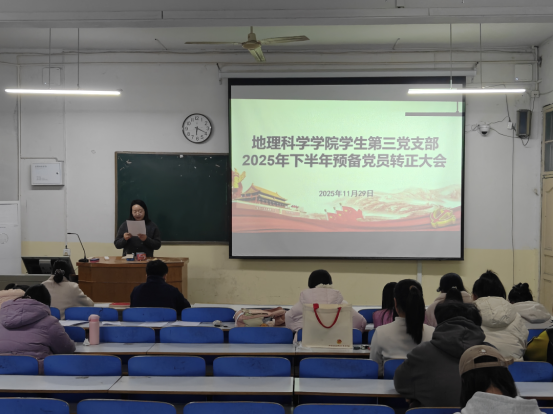 11月29日,我院学生第三党支部2025年下半年预备党员转正会议于教三04顺利召开。支部书记刘会云和支部全体成员共同参会。会议由刘会云主持。