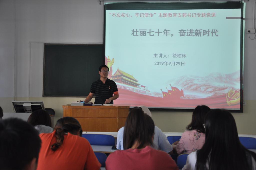 9月29日,太阳集团tyc234cc学生第二党支部在教三03开展了题为“壮丽七十年,奋进新时代”的“不忘初心,牢记使命”主题教育党课,学生第二党支部书记徐柏林与党支部全体党员、预备党员共计16人一同参加本次活动,党课由徐柏林主讲。