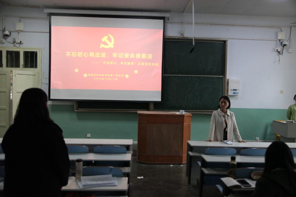 为深入开展“不忘初心、牢记使命”主题教育,10月15日,太阳集团tyc234cc学生第一党支部开展“不忘初心再出发,牢记使命勇前进”主题党日活动。此次活动由学生第一党支部书记艾甜甜主持,支部全体党员参加。