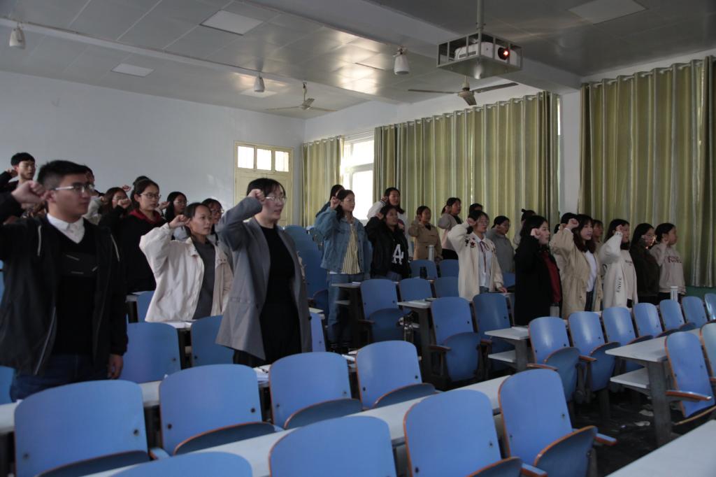 会议伊始,与会成员一同观看学习习近平讲述的红色故事《英雄母亲邓玉芬》,体会邓玉芬为了革命事业艰苦奋斗、英勇无畏的共产党员精神。随后,支部组织委员郑媛元带领全体党员宣誓,唤醒入党初心。接着,与会成员围绕“不忘初心,牢记使命”依次上台发言,开展交流讨论。最后,艾甜甜总结发言,她要求全体党员要深刻理解共产党员的初心和使命的丰富内涵,要以习近平新时代中国特色社会主义思想为指导,树牢“四个意识”,坚定“四个自信”,结合自身发展,加强政治理论学习,坚定政治立场,不断提升践行初心和使命的能力。