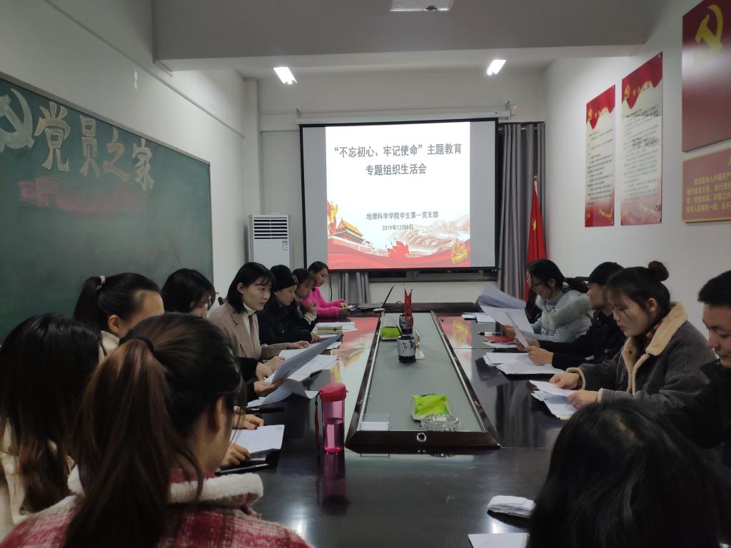 12月8日,太阳集团tyc234cc学生第一党支部于理科楼南楼403会议室召开“不忘初心,牢记使命”专题组织生活会和民主评议党员活动。会议由学生第一党支部书记艾甜甜主持,支部全体党员参加会议。