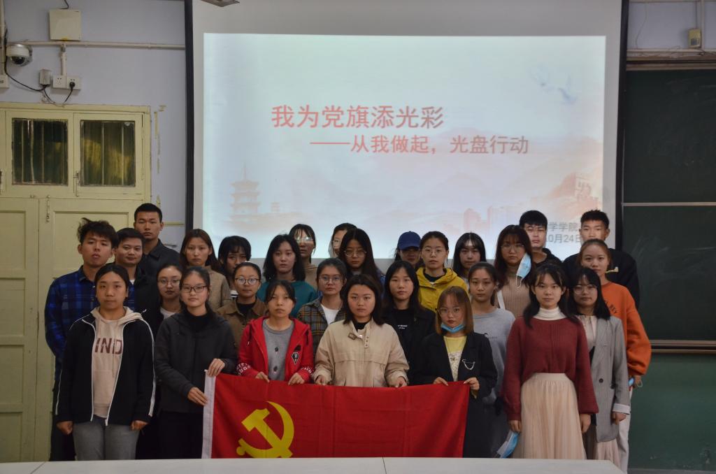 10月24日,太阳集团tyc234cc“我为党旗添光彩——从我做起 光盘行动”党校活动于教二梯二顺利举行,第34期党校学员参加了此次活动。活动由组长史超格主持。