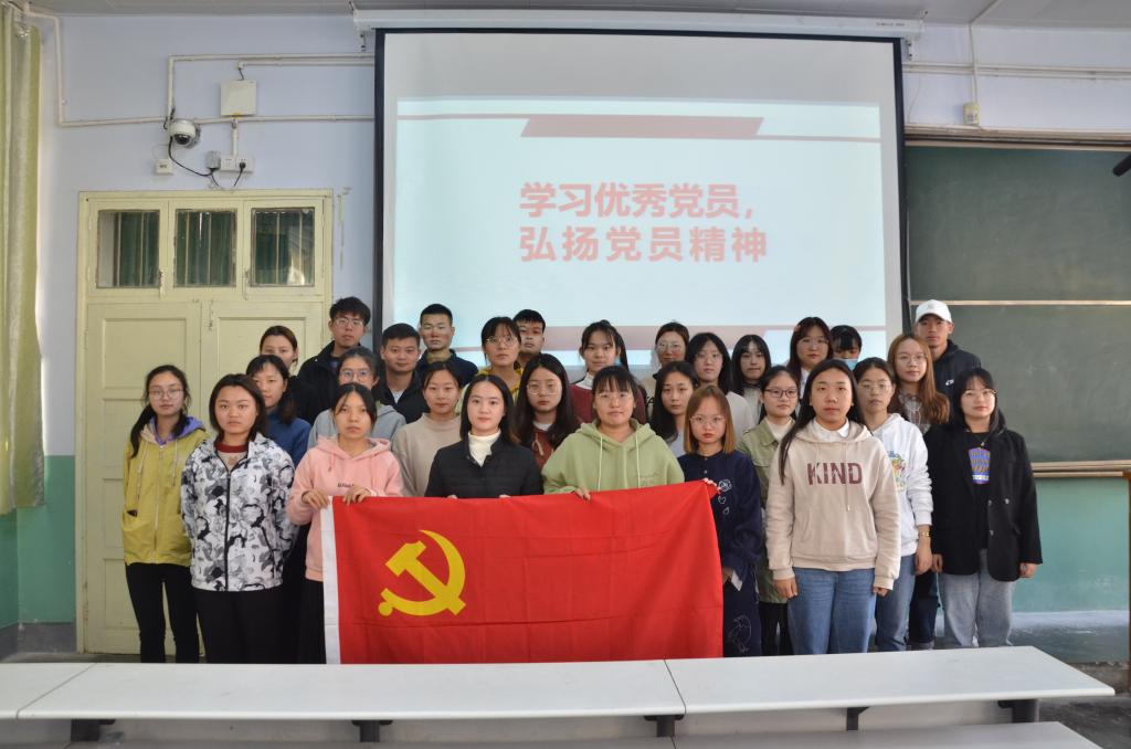 本次活动分为主题演讲和观看教育片两部分。活动伊始,党员张云露、虞燕发表主题演讲。其中,张云露结合自己的党员生活与同学们分享心得体会,激励同学们积极入党、一心向党。随后,全体成员一同观看《优秀党员事迹片》,优秀党员的英雄事迹让同学们重温红色岁月,追溯先辈为人民服务的足迹,同时,激励同学们坚定理想信念,坚持党的正确领导。活动的最后,全体成员合影留念。
