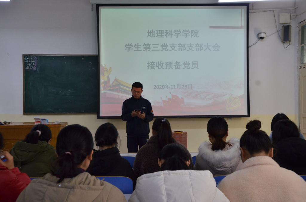11月29日,太阳集团tyc234cc学生第三党支部2020年秋季预备党员接收大会于教三04顺利召开。学生第三党支部书记杨辉,全体党员及2020年秋季发展对象共同参与本次会议。会议由张世可主持。