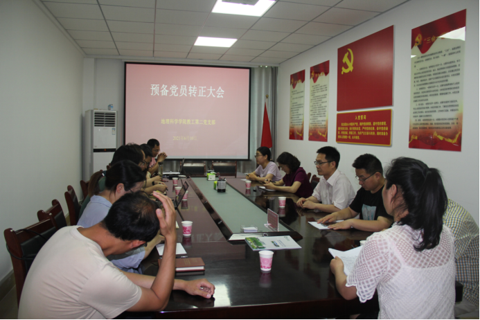 会上,预备党员周瑞雅同志首先宣读了转正申请,并汇报自己在预备期间的表现情况。入党介绍人颜俊博士和郑茜博士简要介绍了周瑞雅同志在预备期内培养考察情况。两名入党介绍人均表示,在预备期间,周瑞雅同志认真学习党的基本理论,工作尽职尽责、勤奋踏实,生活中能严格要求自己,严格遵守各项规章制度,组织纪律观念较强,同意其转为正式党员。接着,支部书记闫军辉宣读了“关于周瑞雅同志预备党员转为中共正式党员的综合考察报告”。报告指出,周瑞雅同志在预备期间,认真学习党的知识,比较系统地学了习近平新时代中国特色社会主义思想,深刻领会“十九大”精神,政治思想理论水平有了显著提高,更加坚定了共产主义信念。经支委会研究,同意周瑞雅同志按时转为正式党员。随后,与会党员发表意见,对预备党员能否按期转正进行充分讨论。最后,与会正式党员采取无记名投票方式进行表决,一致通过周瑞雅同志按期转正。支部书记闫军辉宣读支部大会决议,预备党员对支部大会决议表明态度。