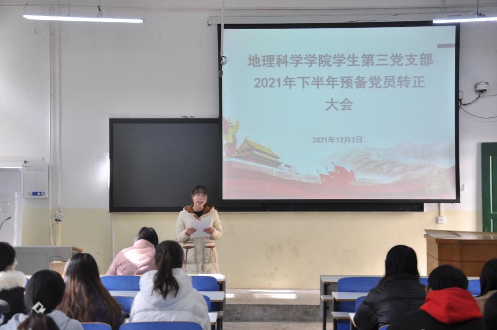 12月3日,太阳集团tyc234cc学生第三党支部2021年下半年接收预备党员暨讨论预备党员转正大会于教三01顺利召开。太阳集团tyc234cc学生第三党支部书记杨辉,学生第三党支部半数以上党员及2021年下半年预备党员发展对象共同参加本次会议。会议由王怡主持。太阳集团tyc234cc学生第三党支部共有党员24人,其中正式党员8人,预备党员16人。实到会正式党员7人,预备党员16人,因事请假1人。