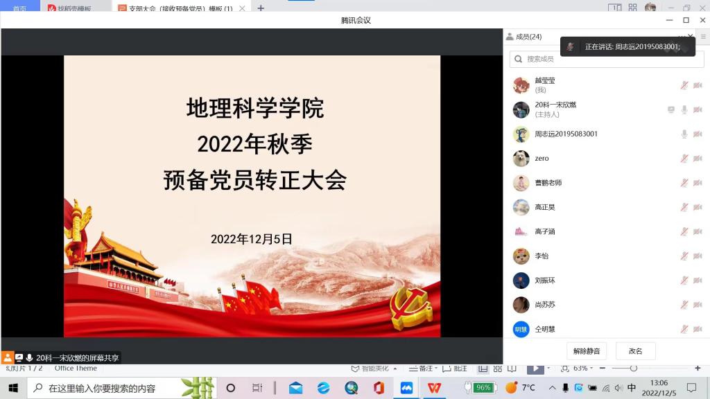 12月5日,我院学生第二党支部2022年下半年接收预备党员暨预备党员转正大会于线上顺利召开。支部书记曹鹏鹏,支部全体党员和2022年下半年发展对象共同参会,会议由曹鹏鹏主持。