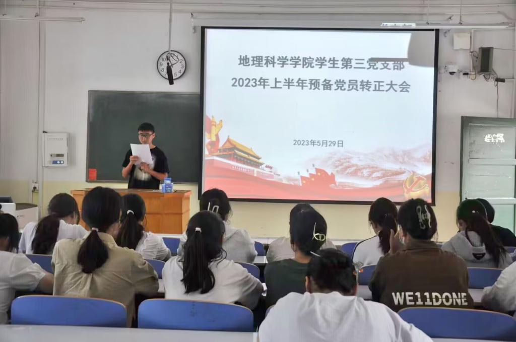 5月29日,我院学生第三党支部2023年春季预备党员转正大会于教三207顺利召开,支部书记杨辉出席会议,支部全体党员及2023年春季正式党员候选人共同参会。会议由徐立达主持。