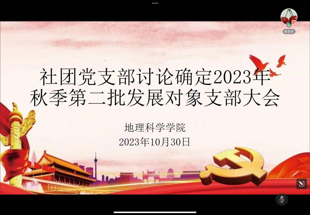10月30日,我院社团党支部2023年下半年确定第二批党员发展对象会议于线上顺利召开。支部书记姚玉坤及支部全体成员共同参会。会议由姚玉坤主持。