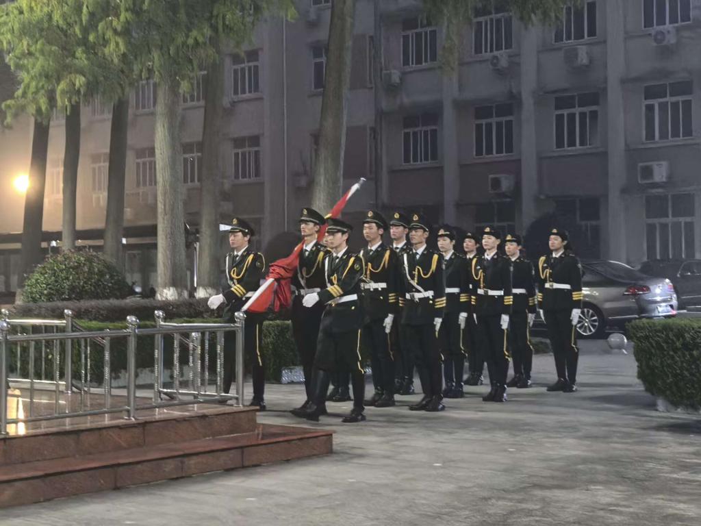 6点15分,同学们准时于明德广场集合完毕,全体学生在升旗台前整齐列队,庄严肃立,等待升旗仪式的开始。6点30分,国旗护卫队迈着整齐的步伐护送国旗到达升旗台前。他们眼神坚定,身姿挺拔,步履铿锵。伴随着国歌的奏响,主旗手用力扬起国旗,全体师生向国旗行注目礼,鲜艳的五星红旗在师生的注视下缓缓升起,飘扬在天空中。礼毕,学生代表侯陆佳以《“天生我材必有用”,自信昂扬,展现独特风采》为主题发表演讲,以李白的诗词为引,讲述在历史长河中身处挫折但最终成功的人们,号召当代青年,作为中华民族的接班人,应当拥有自信,坚定地相信自己的价值,勇敢地追求梦想,展示自己独特的风采。随后,党委副书记韩勇发表国旗下讲话,号召青年应当珍惜这段宝贵的时光,努力学习,不断充实自己,为未来的成功打下坚实的基础,以实际行动来回报这个伟大的时代,不负韶华、不负时代、不负人民。最后,仪式在《歌唱祖国》的合唱声中拉下帷幕。
