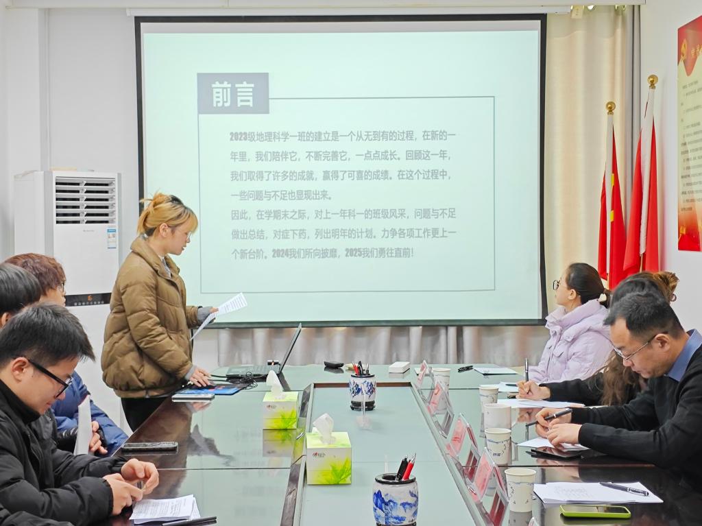 为进一步完善工作机制,加强学院共青团建设,从根本上提高各班团组织工作的规范化和制度化水平,12月21日,我院于理科楼南楼403教室举办2024年年终班级量化考核暨班长述职大会。我院党委副书记韩勇、学生会主席杜思雨、副主席林方琼、李诗璇、陈静怡和各班班长共同参与此次会议,学生会主席团成员担任评委,会议由林方琼主持。