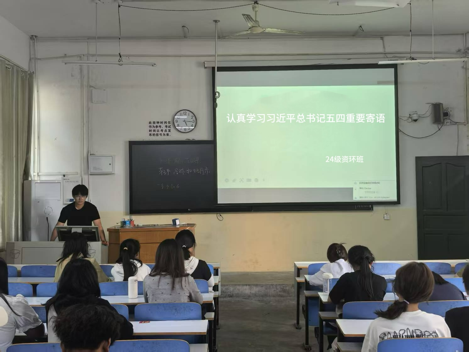 活动伊始,各班团支书对本次团日活动的主要内容进行了详细说明,带领团员青年们深入学习习近平总书记在五四青年节期间的重要寄语、重要讲话以及重要回信精神。通过重温总书记对青年的殷切期望,团员青年们深刻感受到了党对新时代青年的关怀与重托,进一步明确了自身肩负的时代使命。在学习过程中,各团支部通过观看专题视频、开展小组讨论、分享学习心得等多种形式,深入领会习近平总书记对青年提出的“立志做有理想、敢担当、能吃苦、肯奋斗的新时代好青年”的要求。同学们纷纷表示,要将总书记的嘱托牢记于心,将个人理想融入国家发展大局,努力成长为堪当民族复兴重任的时代新人。