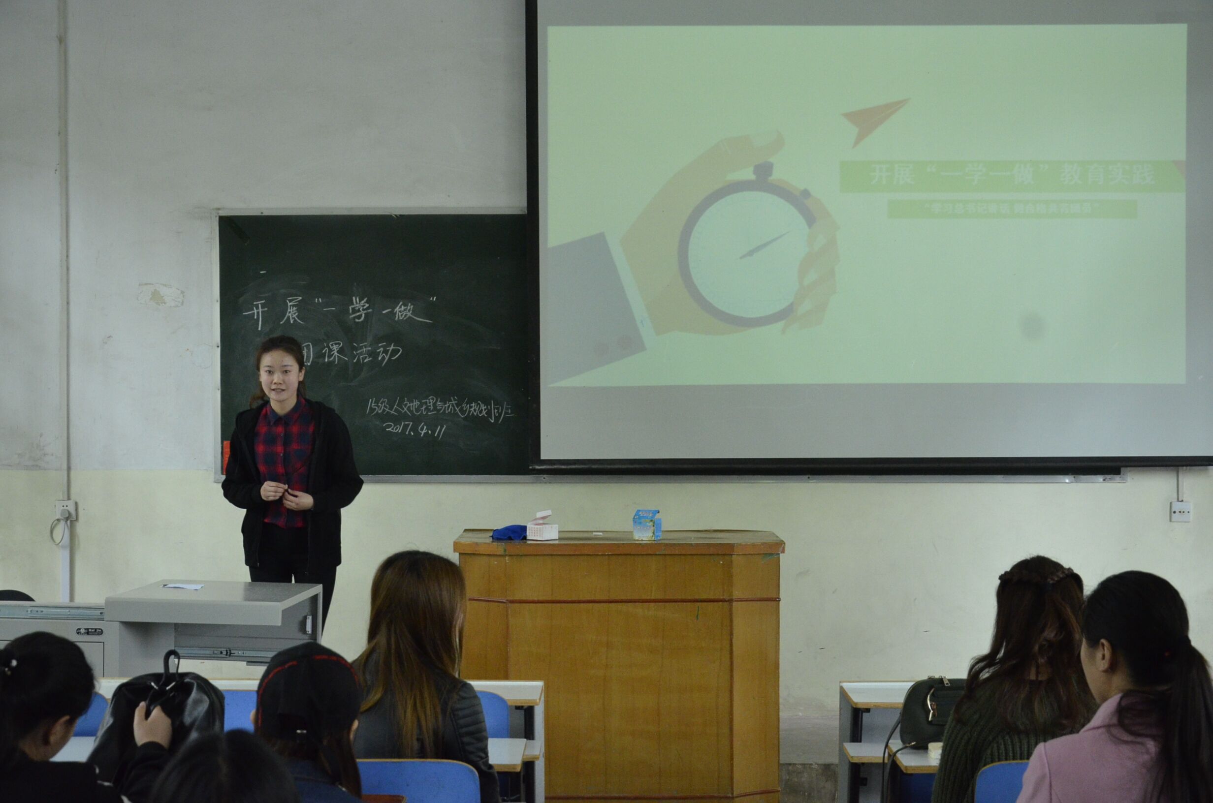 各班级团支书积极响应学院团委号召,以《共青团中央关于在全国集中开展“学习习近平讲话,做合格团员”教育实践的通知》为主题核心,以PPT的形式带领班级团员学习相关文件,回顾学习了团章、团史并讲解“一学一做”的具体内容。团员们通过观看优秀指导视频,积极地提出自己的意见,并进行个人总结,诠释了“一学一做”的深刻内涵。最后,班级优秀团员及入党积极分子结合自身经历,分享了自己对“一学一做”的理解,并希望团员能够认识到“一学一做”的重要指导精神,努力成为一名合格的共青团员。
