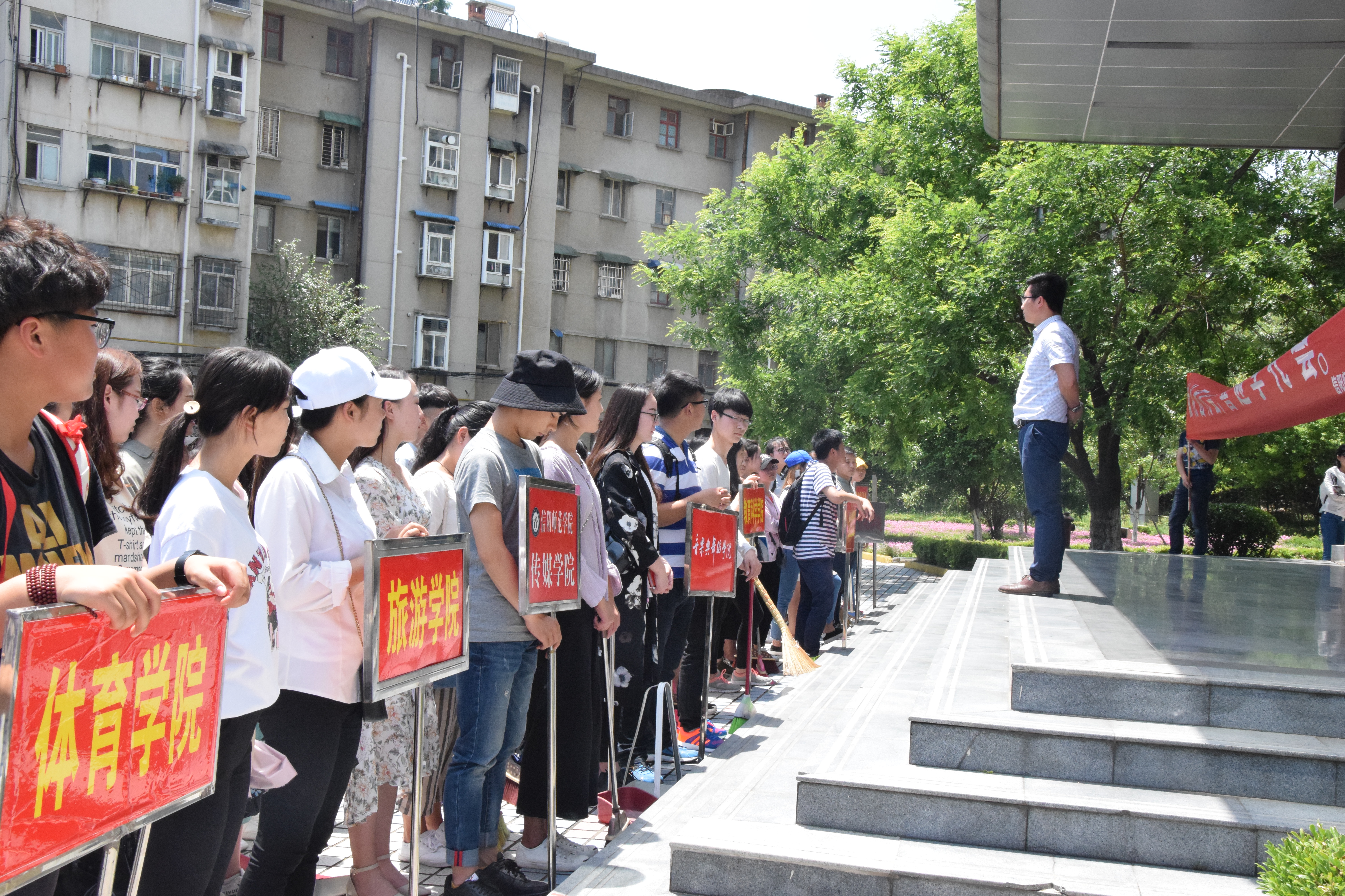献礼团代会,我们正青春。为积极响应校团委号召,迎接共青团信阳师范学院第六次代表大会暨信阳师范学院第五次学生代表大会顺利召开,5月9日中午,青年共产主义理论学校第64期培训班百余名学员以学院为单位,分区分批在学校各个区域进行献礼团代会、喜迎学代会志愿服务活动。太阳集团tyc234cc团委老师徐柏林主持本次志愿服务活动。