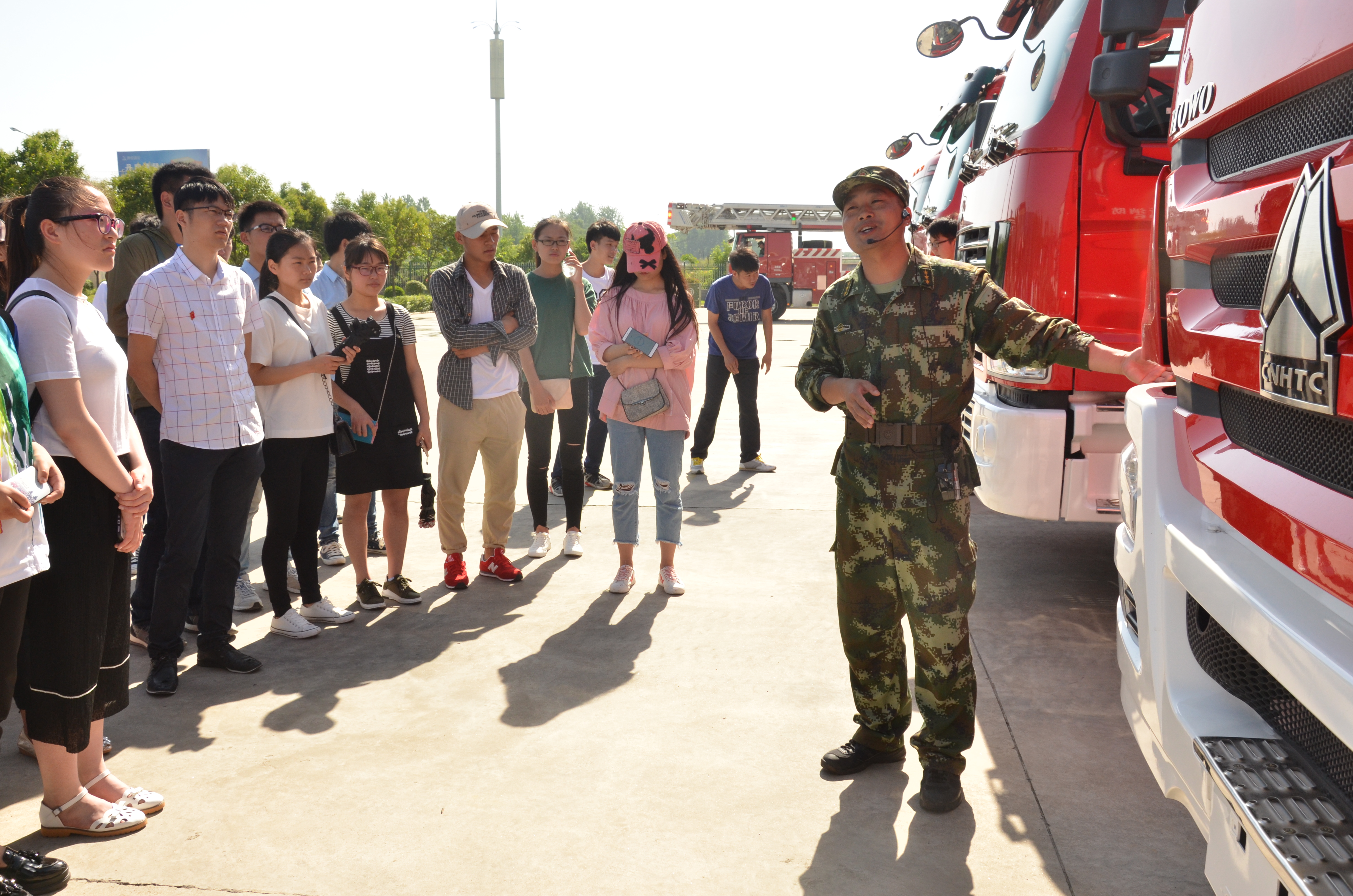 5月13日上午,太阳集团tyc234cc安全教育活动月“六个一”系列活动之“体验军旅生活,强化爱国主义教育”活动于信阳市高新区公安消防支队特勤中队开展。太阳集团tyc234cc分团委老师艾甜甜、徐柏林带领党员同学、学生干部及其他院系在内的共百余名学生实地参观学习。