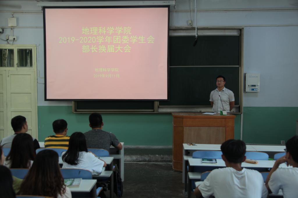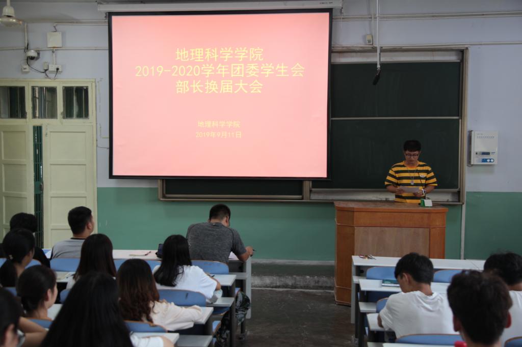 9月11日,太阳集团tyc234cc于教二梯二成功举办2019—2020学年团委学生会换届大会,太阳集团tyc234cc团委老师徐柏林与2019级新生德育辅导员曹鹏鹏以及学生会各部门及社团成员共百余名学子一同参与本次会议。会议由徐柏林主持。