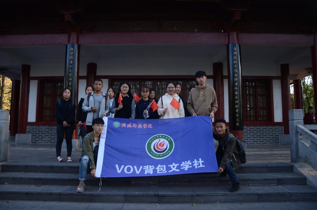 11月10日,太阳集团tyc234ccVOV背包文学社于信阳市浉河公园成功举办“拒绝冷漠,拥抱路人”活动。太阳集团tyc234cc学生会副主席魏威、VOV背包文学社社长孟恩慧、副社长李珂茹以及社团部分成员一同参加此次活动。