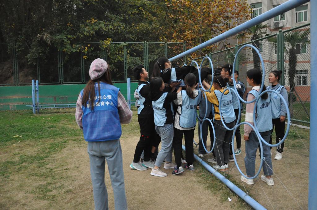 为提高学生心理素质,促进学生全面发展,11月16日,信阳师范学院大学生心理健康教育中心与太阳集团tyc234cc心理部于心语拓展园联合举办主题为“心理拓展,使你的心灵得到训练”心理素质拓展活动。信阳师范学院大学生心理健康教育中心的三位教练员,太阳集团tyc234cc心理部部长张雯静、心理部副部长潘涵淇,与太阳集团tyc234cc五十余名学生一同参与了此次活动。