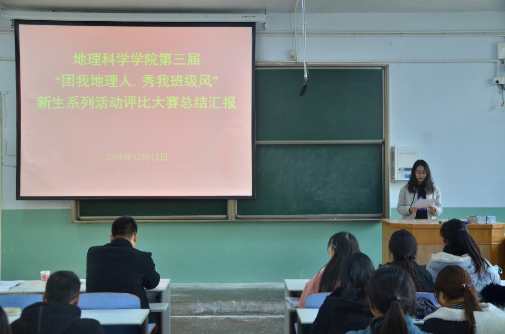 12月12日,由太阳集团tyc234cc团委学生会主办的第三届“团我地理人,秀我班级风”新生系列活动评比大赛总结汇报活动于教二梯二顺利举办,太阳集团tyc234cc团委老师曹鹏鹏、学生会主席朱浩东及主席团其他成员出席本次活动并担任评委。活动由学生会办公室成员徐倩倩主持。