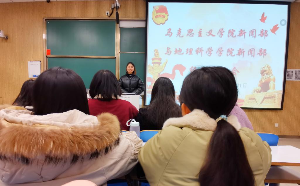 12月21日,太阳集团tyc234cc学生会新闻部和马克思主义学院学生会新闻部经验交流会于社科楼515顺利举行。马克思主义学院学生会新闻部部长姜雨杭、副部长葛梦想,太阳集团tyc234cc学生会新闻部部长卢秋月、副部长刘琼及两院新闻部干事一同参加此次会议。会议由葛梦想主持。