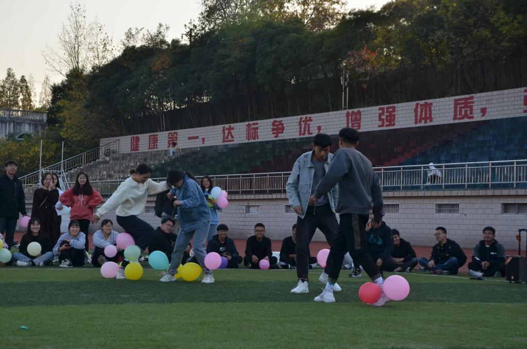 主持人简要介绍活动流程和内容后,活动正式开始。本次活动以部门为单位,共有传气球、猜歌名、顶气球、击鼓传花、踩气球五项比赛内容。在传气球比赛中,各部门派出相应人数进行传气球,同学们同时运用脑力和体力将气球快速传到终点。猜歌名比赛中,同学们需要根据所播放的歌曲猜歌名,率先回答正确者积一分,音乐前奏响起,参赛者争先抢答,说出歌名并哼唱几句,争取拿到积分。踩气球比赛中,各部门男女生相互配合,与其他部门pk,队友们身手敏捷,团结合作,场上热闹非凡。主持人计算比赛积分后对积分最少组进行惩罚,惩罚环节更是别出心裁,令人惊叹。学生会全体成员合影留念,至此,素质拓展活动顺利落下帷幕。