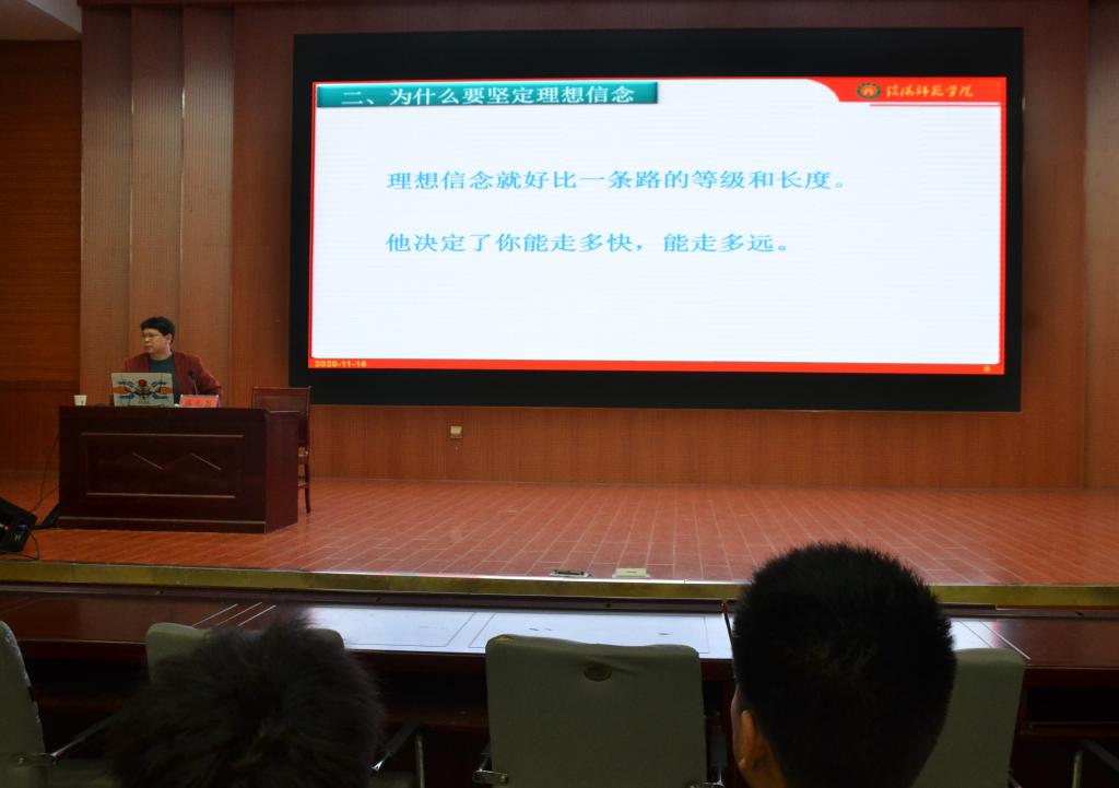 11月16日,体育学院副处级辅导员柴九昌应邀于逸夫楼报告厅为我院及数学与统计学院2020级学生讲授团课。太阳集团tyc234cc团委老师曹鹏鹏、数学与统计学院团委老师陈兴海及两个学院2020级全体学生共同参与了此次活动。