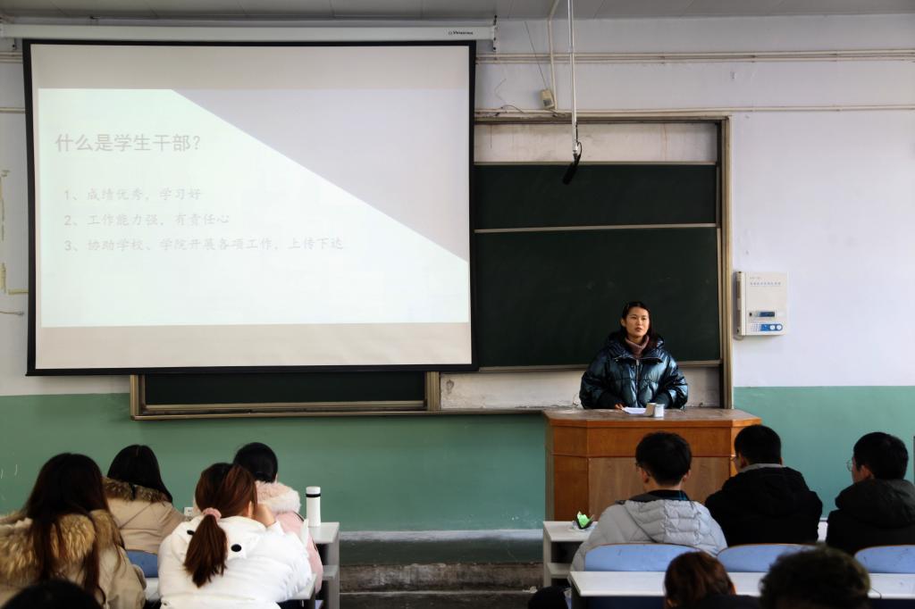 12月15日,太阳集团tyc234cc2020—2021学年学生干部培训班第四期于教二梯二顺利开展。太阳集团tyc234cc2019级学生会成员,2020级各班班长、团支书一同参加此次活动。活动由学生会主席助理王瑞主持。