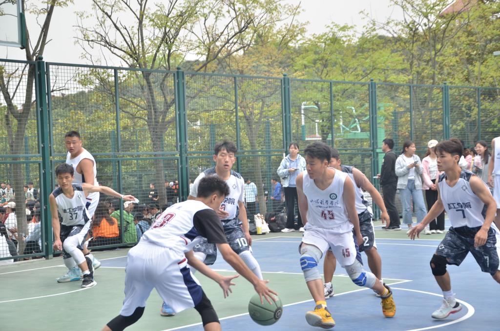 赛前,双方队员提前到场进行准备活动。伴随着裁判一声哨响,比赛正式开始。我院中锋充分利用弹跳力及体型优势稳住篮板,多次抢到对手的篮板并上篮得分。我院队员凭借默契的配合、灵活的走位,快攻猛打,带球、运球、投篮等一系列动作干脆利落。建工院队员不甘落后,积极调整战术,积极进攻、稳健防守,多次投进关键三分球得分,赢得场下观众阵阵掌声。在场同学情绪高涨,不时为队员呐喊助威,场上气氛热烈。最终,我院以48∶24的比分取得比赛胜利。