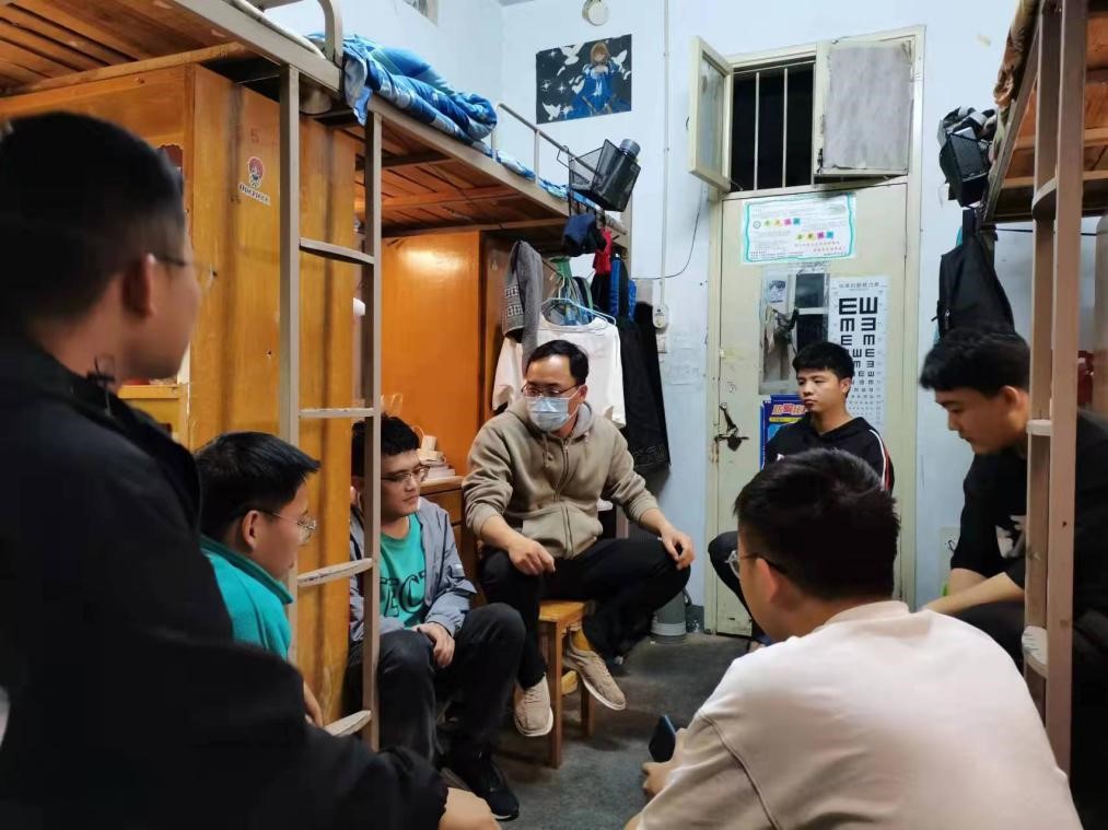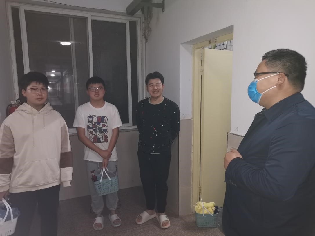 “五一”期间,太阳集团tyc234cc党委副书记朱明带领全体辅导员、班主任深入学生宿舍,走访慰问学生。宿舍走访过程中,朱明仔细查看了学生住宿环境和条件,详细询问了他们学习、生活、就业情况,认真听取他们面临的困难与建议。朱明对同学们理解和遵守学校疫情防控工作要求表示赞赏,提醒同学们在常态化防疫期间做好自我管理,养成良好的学习、生活习惯和积极的心理状态。