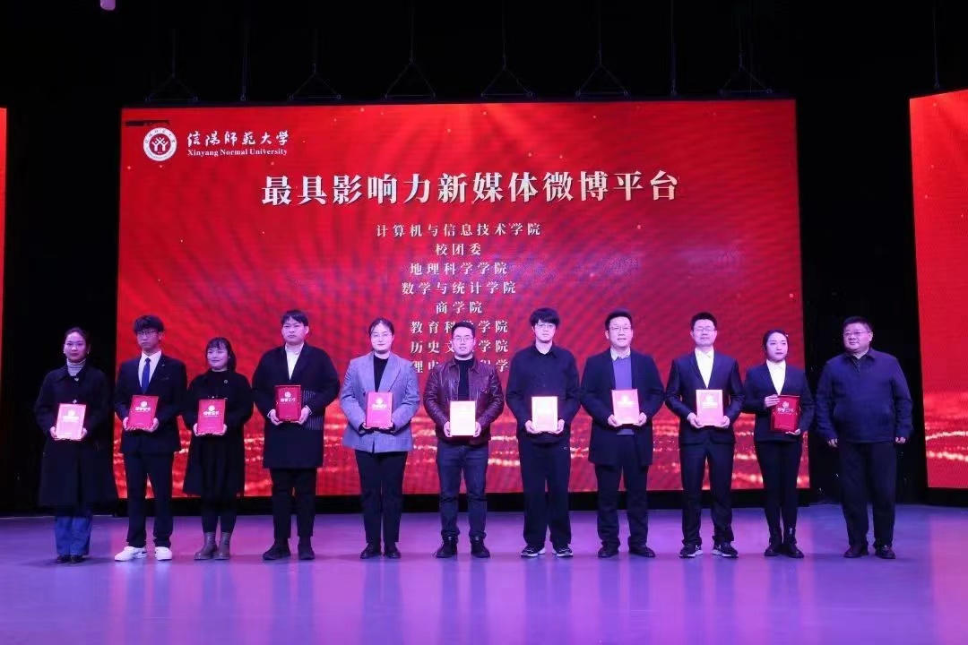 本次颁奖典礼涵盖集体奖50个、个人奖30个、作品奖45个。我院荣获2023年度最具潜力新媒体团队、2023年度最具影响力新媒体微博平台两个集体奖。另外,微博作品《#信Star,随手拍#》获得2023年度最受欢迎新媒体微博作品奖,微信作品《广播体操|摆脱脆皮,飞扬青春》获得2023年度最受欢迎新媒体微信作品奖,2022级地理科学1班徐丹同学荣获2023年度新媒体工作新锐青年奖。